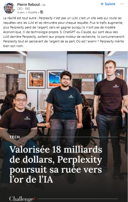 Le business-modèle et les pratiques de la société Perplexity sont éloquents : pour simplifier fortement, la société reroute les requêtes de ses utilisateurs vers le LLM le plus approprié.